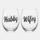 Verre À Vin Sans Pied Hubby amusant + Wifey Script Mariage Nouveaux mari