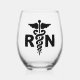 Parfait pour après cette interminable équipe de 12 heures quand vous avez besoin de ce verre relaxant de rouge ou blanc. Verre à vin sans cachet avec lettrage RN et un caduceus entre les deux.