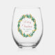 Beau cadeau de vacances en verre de vin en couronne de Noël de famille personnalisée avec une jolie couronne de Noël et votre message personnalisé ou nom de famille. Décor festif pour les vacances.
