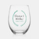 Cet élégant verre de vin, orné d'une couronne d'aquarelle botanique de feuilles verts, fera le bonheur de vos invités mariages ou de votre fête de mariée ! Assurez-vous de faire deux pour la mariée et le marié aussi! Personnalisez avec le nom de la mariée et du marié et la date du mariage.