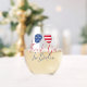 Verre à vin Merci Joe Biden écrit en lettres cursives rouges et bleues sous une paire cool de lunettes de soleil avec le drapeau américain dans les ombres. Les Démocrates remercient notre président d'avoir fait autant pour notre pays avec ce design commémoratif.