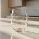 Minimalistic Script Custom Names Engagement Stemless Wine Glass. Add your names and engagement date to this modern and simplistic wine glass, designed in with elegant script lettering.