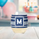 Couleurs fraîches et lumineuses de bleu et blanc sur ce design rayé avec une boîte monogramme pour une seule initiale.