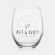 Des verres à vin de mariage personnalisés font un merveilleux cadeau de conservation pour la mariée et le marié ou personnalisent chacun pour une faveur unique de fête de mariage pour donner à vos groomsmen, demoiselles d'honneur ou membres de la famille. Ce design rustique moderne de style logotype possède une tige florale simple et une typographie mixte. Personnalisez le modèle avec les noms de la mariée et du marié ou les initiales monographiques. Ajoutez votre date de mariage, le nom de la ville, de l'état ou du lieu ou tout autre texte personnalisé. Utilisez les outils de conception pour choisir n'importe quelle couleur arrière - plan, modifier les polices ou télécharger vos propres photos pour créer des lunettes de boisson complètement personnalisées pour correspondre à vos couleurs et à votre style mariage!