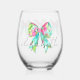 Ce mignon verre à vin personnalisé comporte un grand arc dans les tons rose et vert préppy et le nom en noir sur l'avant et trois arcs et le texte sur le dos. Personnalisez avec votre choix de nom et de texte spécial. Idéal pour un sac cadeau personnalisé ou un week-end de fille.