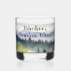 Show your love for your family and home with these mountain forest themed glasses with room to add your family or land name and date established. A beautiful watercolor of the mountains as a background for this customized glass design. Choose your own style of font if desired to make this a unique gift for a loved one. Original design by Night Owl's Menagerie, 2025.