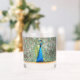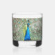 Verre à Whiskey qui présente l'image photo d'un beau paon bleu avec un plumage de queue coloré. Image imprimée sur un côté du verre.