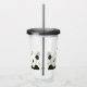 Verre acrylique avec Pandas, Le verre comprend une paille noire et un dessus. Les Pandas étaient à l'origine des photographies peintes avec des peintures informatiques.