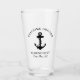 Un verre à bière monogrammé sur le thème nautique pour les invités de votre bateau avec une illustration d'une ancre noire. Personnalisez le texte "Welcome Aboard" et le nom et l'emplacement de votre bateau dans une typographie élégante.