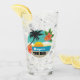 Design Tropical Tiki Bar ou Beach Bar avec votre texte personnalisé pour le nom ou le nom du bar sur vos verres à cocktails. Coucher de soleil d'océan avec palmier et fleurs d'hibiscus.