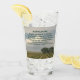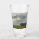 Verre à bière et autres boissons froides qui présente une image photo de paysage rural de terres agricoles ainsi qu'une bénédiction irlandaise traditionnelle imprimée en lettrage celtique de couleur vert foncé.