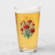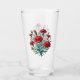 Un verre à tambour ou à boire avec un bouquet d'oeillets rouges.
