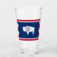 Ce design présente le drapeau de l'état du Wyoming, qui est un état doublement enclavé dans l'ouest des États-Unis. C'est le deuxième état le moins peuplé du pays. Le Wyoming est bordé au nord par le Montana, à l'est par le Dakota du Sud et le Nebraska, au sud par le Colorado, au sud-ouest par l'Utah et à l'ouest par l'Idaho et le Montana. Le surnom officiel du Wyoming est "Etat de l'Égalité", mais il est aussi parfois connu comme "Etat Cowboy" ou "Big Wyoming". La moitié ouest du Wyoming est principalement couverte par les chaînes des Rocheuses, tandis que la moitié est de l'état est une prairie à haute altitude appelée les Hautes Plaines. Le parc national de Yellowstone est partiellement dans le Wyoming et le parc national de Grand Teton est entièrement dans l'état. Cheyenne est la capitale de l'état et la ville la plus peuplée du Wyoming. Le drapeau de l'état du Wyoming comprend une silhouette de bison américain. Le rouge symbolise les Amérindiens et le sang des pionniers qui ont donné leur vie. Le blanc est un symbole de pureté et de droiture. Le bleu est la couleur du ciel et des montagnes lointaines.