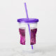 Un tumeur acrylique avec un design abstrait élégant. Couleur améthyste violet foncé avec des rubans d'or nichés entre des strates stratifiées. Un design riche et magnifique. En haut, un cadre en cercle blanc avec une fausse bordure en feuille d'or, avec votre initiale et votre nom monogramme personnalisés à l'intérieur.