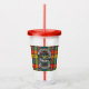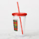 Élégant tumbler acrylique avec badge écossais Clan Buchanan crête et texte sur arrière - plan tartan.