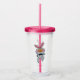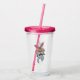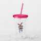 Cette boisson acrylique tumbler avec paille et couvercle a un mignon lapin blanc avec grand nez orange portant une cravate arc-en-ciel noir donnant un pouce sur le devant et le dos.