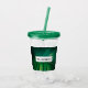 Un agitateur acrylique avec une photo closeup d'une feuille tropicale verte avec des frondes de palmiers vibrantes. Un cadre rectangle blanc superposé avec votre texte à l'intérieur.