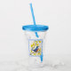 Cette rondelle acrylique avec paille et couvercle a un mignon petit oiseau rouge et bleu assis sur une branche avec des fleurs jaune vif dans une bordure élégante bleu clair.