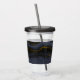 Tumbler acrylique personnalisée avec une belle image de pierre d'agate abstraite foncée. Les couleurs tourbillonnent par vagues. Les couleurs principales sont le noir, le bleu-gris avec un ruban d'or faux qui traverse la conception. Moderne et tendance.
