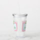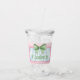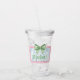 This cute acrylic tumbler features a pink frame with blue and white stripes and topped with a preppy green and white gingham plaid bow on each side. Personalize with your choice of name or special text on the front and back. Fun for personalized party favors and gift bags.
