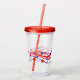 Ce tumeur acrylique avec son propre couvercle et sa paille a une image d'étoiles rouges et bleues et des serpentins astucieusement exposés sur un tumeur clair. Images des deux côtés. Lid et paille indiqués en rouge. Choisissez votre couvercle de couleur / jeu de paille.