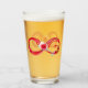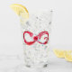 Infinity symbole of continuous stream of red pouring into glass glass glass on white background.