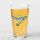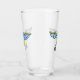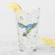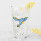 Ce caisson en verre pour boissons a un joli bleu imaginaire en vol avec une queue rayée jaune et des accents pointillés bleu foncé.