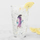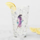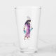 Cette agitatrice en verre pour les boissons a une jolie dame aux cheveux noirs portant une robe rose et tenant une écharpe bleue de l'Egypte ancienne sur le devant et le dos.