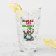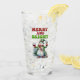 Un design de Noël amusant et gai présente un bonhomme de neige joyeux habillé d'un long manteau vert avec un chapeau dessus assorti, un foulard rouge et des mitaines. Il tient un verre de vin rouge d'une main et du vin blanc de l'autre. Le texte rouge et vert festif dit : "Joyeux et lumineux." Ce design est disponible sur une variété de produits, ce qui en fait un cadeau parfait pour les amateurs de vin.