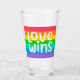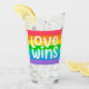Cette oeuvre d'art présente un arc-en-ciel coloré avec les mots Love Wins.