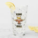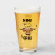 Profitez de ce verre de bière Longhorn "One of a Kind" unique! Il comporte une comique Longhorn Steer portant une grande couronne et les mots... "KING OF the GRILL"! Design D'Art Original Par L'Artiste Kerry Miller !