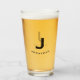 Verre de bière monogrammé avec initiale au-dessus du nom dans un design simple et minimaliste.