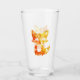 un design décoratif d'un petit renard mignon avec des couleurs orange et jaune sur sa silhouette ressemblant à des flammes sur un verre à boire.