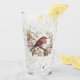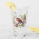 C'est un verre à boire qui a un Robin parmi quelques fleurs de fleurs.