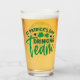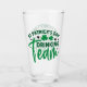 Ce verre festif amusant à boire présente l'image textuelle "St Patrick's Day Drinking Team" avec des shamrocks et des coeurs. Parfait pour la Saint Patrick.