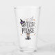 Ce verre amusant sera parfait pour votre fête d'Halloween adulte. Il est écrit "Sorcière s'il vous plaît !" et il y a un casquette de sorcières noires sur le W et des bas rayés orange et noir avec des bottes à orteils noirs. Le design est imprimé de chaque côté.