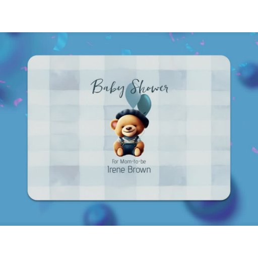 Créez un verre de baby shower unique aux couleurs bleues et un ours en peluche décontracté chic. L'avant et l'arrière comprennent le nom de l'événement et l'invité d'honneur que vous pouvez modifier pour répondre à vos besoins. Portez Jean Baby design. Utilisez le modèle pour créer un verre de boisson spécial et personnalisé pour votre baby shower.