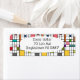 Ces étiquettes d'adresses de retour ont un design moderne du milieu du siècle d'une grille de lignes noires avec des carrés et des rectangles aux couleurs rétro sur un champ de blanc.