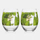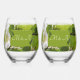 Un rappel parfait de votre journée parfaite avec ces verres à vin sans tige avec un beau vert riche dans les tons et des feuilles d'arbres au soleil.