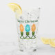 Trois ampoules colorées de jour férié toutes rangées sont présentées dans le graphique de Noël qui orne ce verre de boisson dans les tons orange et bleu avec des cordons verts entre les deux. Le texte est facile à customiser.