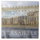 A beautiful view of the Palace of Versailles in France behind golden railings printed on a souvenir ceramic tile.