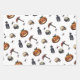Enveloppez vos cadeaux dans un style épilant ! 👻 Tête-citrouille blanche de type Cartoon avec 🎃 lumière intérieure brillante et 💀 hache géante. Entourés de mauvais citrouilles, de crânes 💀, de tombes et de toiles d'araignée 🕸️, parfait pour les papiers d'enveloppement d'Halloween ! 🕷️