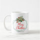 Sirotez la saison avec élégance avec cette tasse de Noël élégante, dotée d'un cadre géométrique vert moderne, de fleurs blanches de style poinsettia, de baies festives et d'un script rouge "Joyeux Noël" audacieux. Un beau mélange de design de vacances minimaliste et classique. Parfait pour faire un don ou profiter de votre boisson d'hiver préférée de façon festive.