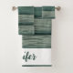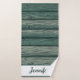 Personnalisez cette serviette de bain en bois vert chasseur pour vos amis de la ferme et du cottage. Le grain de bois vert foncé rustique apparaît sur chaque serviette avec la pièce à personnaliser et ajouter un nom au bas de la grande serviette de bain.