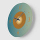 Une horloge simpliste en vert mer. Au centre se trouve un cercle design en bronze clair, bronze et citron. Numéros à correspondre. Disponible en forme ronde et carré.Customisez de changer les couleurs numériques si vous le souhaitez.