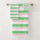 Ajoutez une touche fraîche et vibrante à votre salle de bain avec cette serviette de bain motif rayée verte et rose. Parfait pour le printemps, l'été et l'automne, cette serviette apporte un look élégant et moderne avec une touche rétro. Idéal pour ceux qui recherchent une décoration design, minimaliste et chic dans la salle de bain.