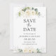 Roses Blanches Verdure Mariage Enregistrer La Carte Date. Cette invitation de mariage élégante et élégante présente de magnifiques aquarelles peintes à la main de verdure Roses blanches. Trouvez les articles correspondants dans la Collection Mariage Watercolor Greenery White Roses.