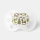 Une tétine comportant un motif orienté de région boisée avec des illustrations des cerfs communs, des arbres, du feuille, et des glands. La conception a un modèle de couleurs vert et brun.