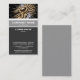 A business card template with an attractive vertical banded design in shades of grey and white with a decorative image texture area at the top. Company name and business type on the main band with Name, title and other address and contact details below, The reverse side of the card has been left blank with a mid grey flat colour. This can be left blank or further customized.