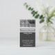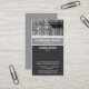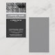 A business card template with an attractive vertical banded design in shades of grey and white with a decorative image texture area at the top. Company name and business type on the main band with Name, title and other address and contact details below, The reverse side of the card has been left blank with a mid grey flat colour. This can be left blank or further customized.